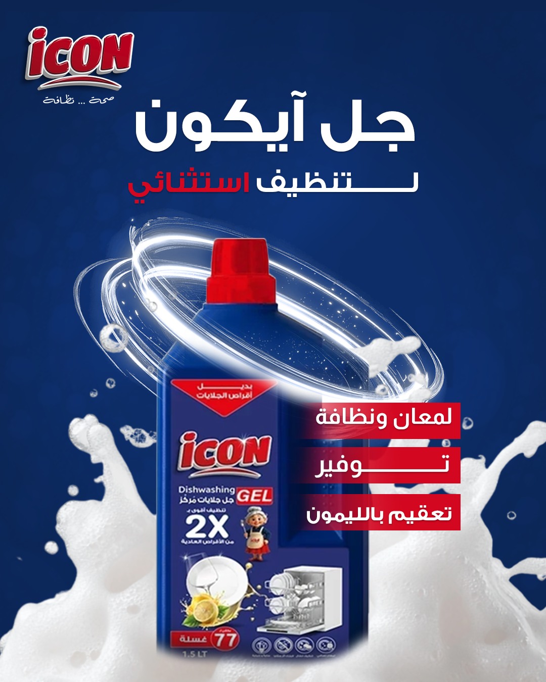 Trusted for both household and professional use, ICON reflects Jordanian industry standards, combining quality, reliability, and value in one superior cleaning product.